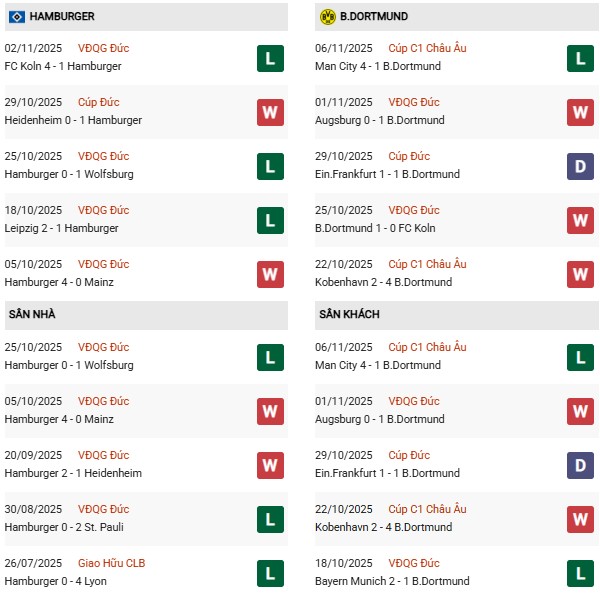- Hamburg thắng 3, hòa 1, thua 6 trong 10 trận gặp Dortmund gần đây.