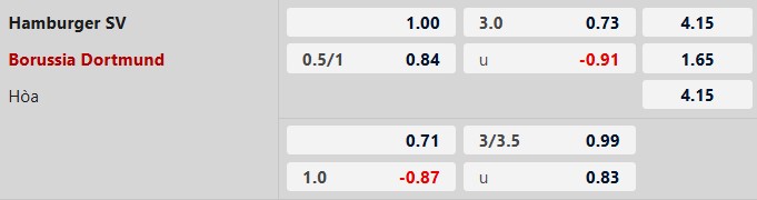 Thông tin tỷ lệ kèo Hamburg đấu với Dortmund: