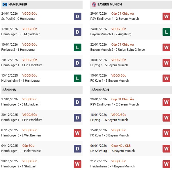 Thống kê phong độ Hamburg vs Bayern Munich: