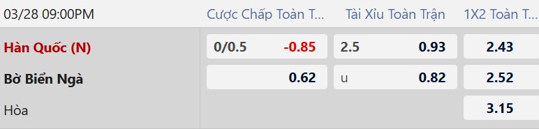 Soi kèo Hàn Quốc vs Bờ Biển Ngà: