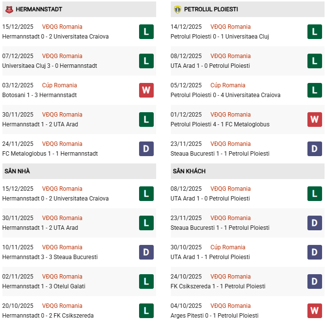 Thống kê phong độ Hermannstadt vs Petrolul: