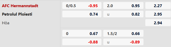 Thông tin tỷ lệ Hermannstadt vs Petrolul: