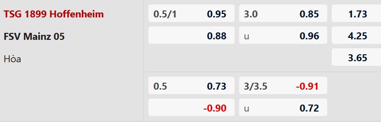 Thông tin tỷ lệ kèo Hoffenheim vs Mainz: