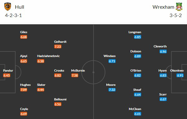 - Trên sân nhà, Hull City thắng 1, hòa 1 trước Wrexham.