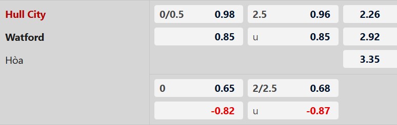 Thông tin tỷ lệ kèo Hull vs Watford: