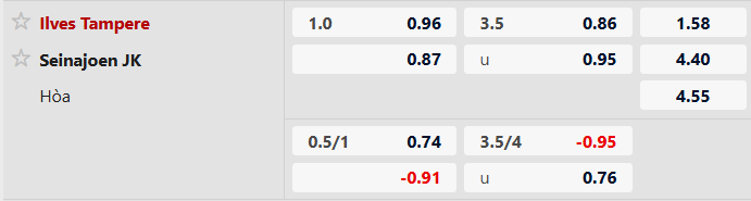 Thông tin tỷ lệ kèo Ilves vs SJK Seinajoen: