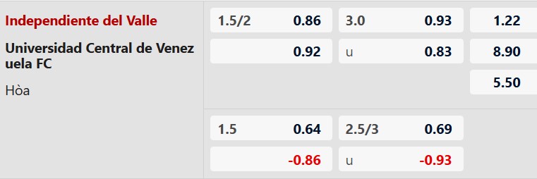 Thông tin tỷ lệ kèo Ind. del Valle vs UCV FC: