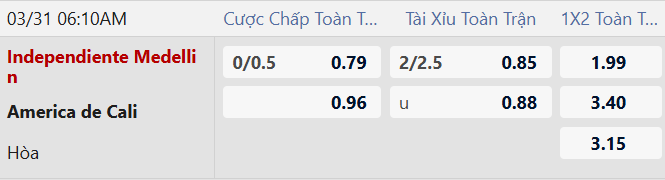 Thông tin tỷ lệ Ind. Medellin vs America Cali: