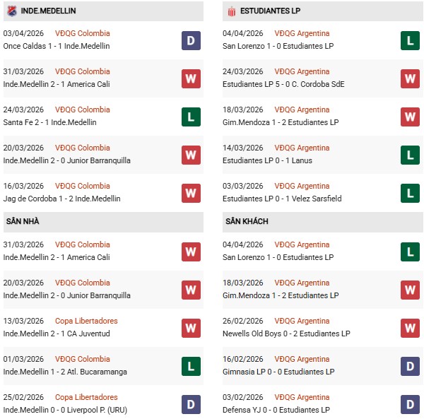 Thống kê phong độ Ind. Medellin vs Estudiantes: