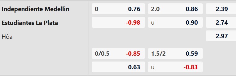 Thông tin tỷ lệ Ind. Medellin vs Estudiantes: