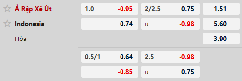 Thông tin tỷ lệ kèo bóng đá Indonesia vs Saudi Arabia: