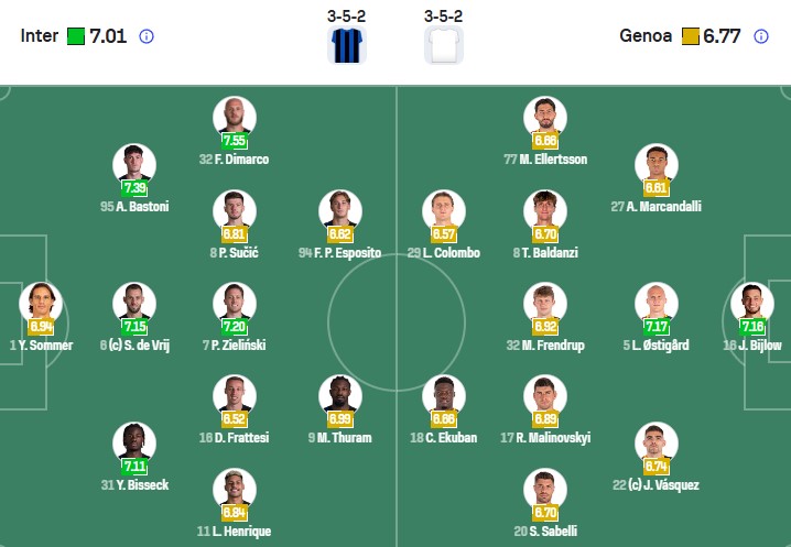 Genoa vừa thắng Torino 3-0 sau 3 trận liên tiếp gây thất vọng. Chắc chắn đội bóng này sẽ gây ra những khó khăn đáng kể cho Inter bởi họ đã lột xác đáng kể về chất lượng lối chơi dưới thời HLV Daniele De Rossi. Cách biệt về thực lực hai đội khá lớn nhưng chắc chắn Genoa sẽ gây những khó khăn đáng kể cho đội đầu bảng. Dù vậy 3 điểm cho Inter là khó tránh khỏi.