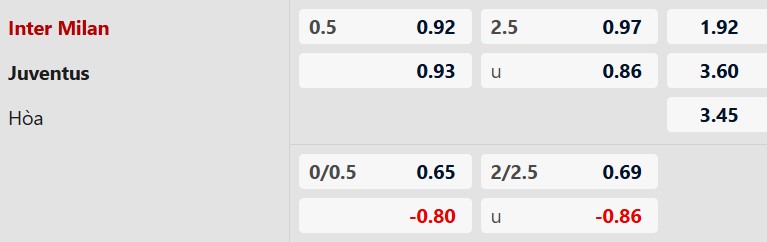 Soi kèo châu Á Inter Milan vs Juventus: