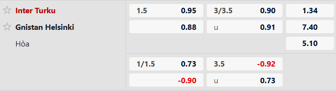 Thông tin tỷ lệ Inter Turku vs Gnistan: