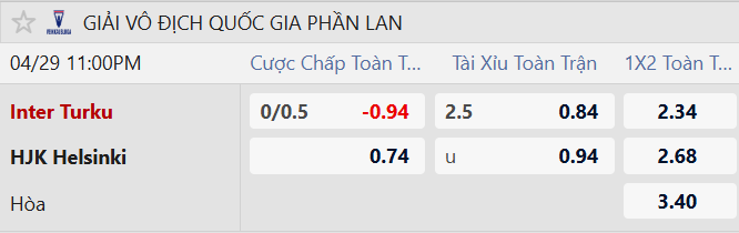 Soi kèo châu Á Inter Turku vs HJK Helsinki: