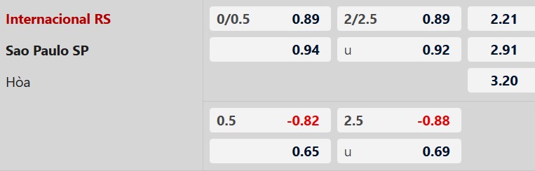 Thông tin tỷ lệ kèo Internacional vs Sao Paulo: