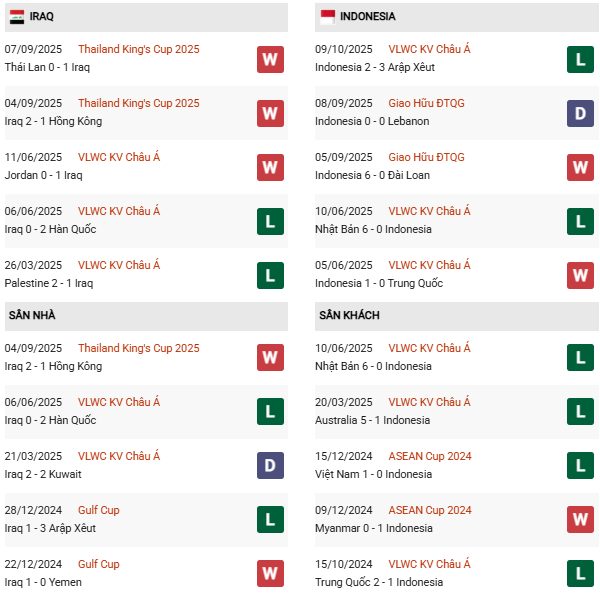 - Iraq toàn thắng cả 6 trận gặp Indonesia gần đây.