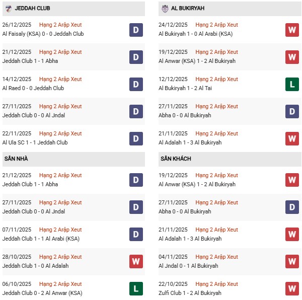 - Trên sân nhà, Jeddah thắng 1, thua 2 trước Al Bukiryah.