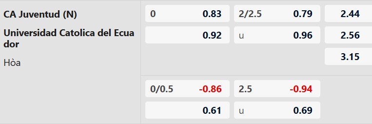 Kèo đồng banh (0:0) xuất hiện trong trận đấu này. Tỷ lệ này cho thấy sự cân bằng cực lớn giữa sức trẻ, sự hưng phấn của Juventud và kinh nghiệm của Catolica. Mặc dù Catolica có trình độ cao hơn nhưng việc phải làm khách ở Uruguay chưa bao giờ là dễ dàng.