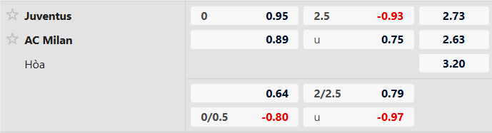 Thông tin tỷ lệ kèo bóng đá Juventus vs AC Milan: