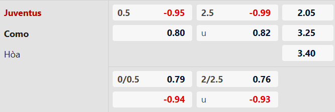 Juve thắng theo châu Á: Juve thắng theo châu Á 3/4 trận chính thức gần đây trên sân nhà. Dù vừa thua Galatasaray rất đậm ở Champions League nhưng khi trở lại Serie A, Juve sẽ thể hiện bộ mặt khác. Como tuy thăng hoa nhưng đội bóng này thường xuyên thua các đối thủ lớn trên sân khách.