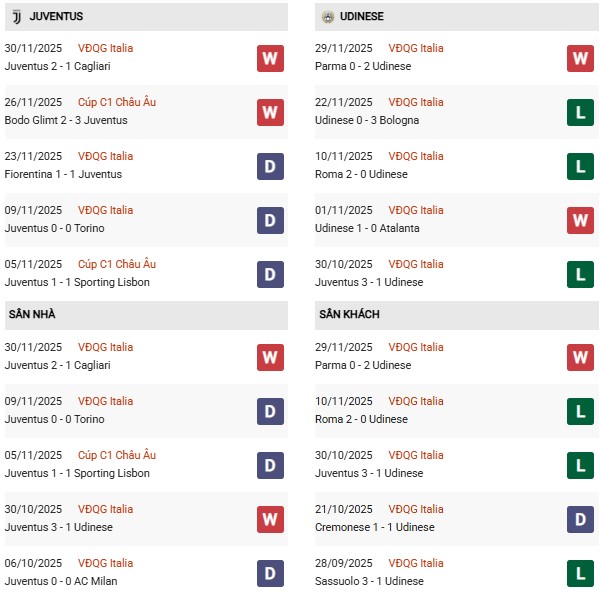 - Trên sân nhà, Juventus thắng 9, thua 1 trước Udinese.