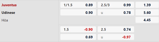 Juventus được xếp ở cửa trên với mức chấp 1 1/4 bàn cả trận. Phong độ của Juventus vs Udinese đang có sự chênh lệch. Juventus có lợi thế sân nhà, tinh thần và sự vượt trội so với Udinese. Nhiều khả năng, "Bà đầm" sẽ chiến thắng để giành vé đi tiếp.