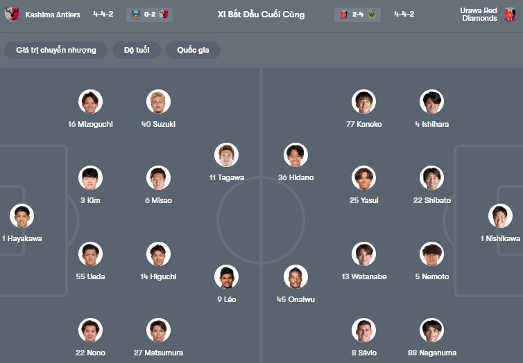 Đội hình dự kiến Kashima Antlers vs Urawa Reds: