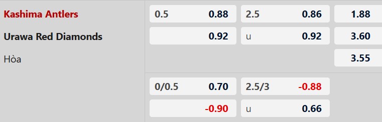 Thông tin tỷ lệ cược Kashima Antlers vs Urawa Reds: