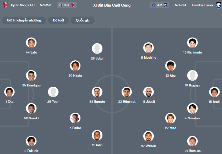 Đội hình dự kiến Kyoto Sanga vs Gamba Osaka: