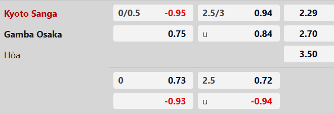 Thông tin tỷ lệ Kyoto Sanga vs Gamba Osaka: