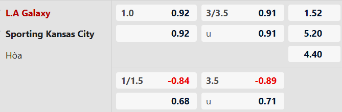 Thông tin tỷ lệ kèo LA Galaxy vs Sporting Kansas: