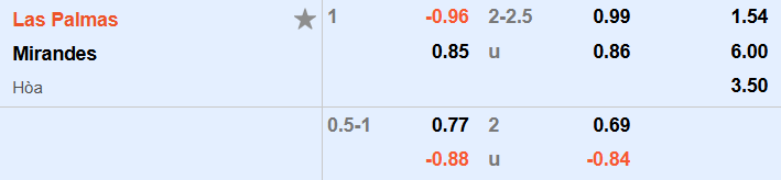Soi kèo châu Á Las Palmas vs Mirandes: