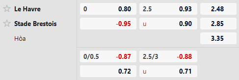 Le Havre đang nhận được niềm tin trong trận đấu này. Điểm ăn ở cửa chủ nhà đã giảm từ 0.93 xuống 0.80. Le Havre thi đấu tốt trên sân nhà khi bất bại trong 3 trận liên tiếp. Trong khi đó, Brest chỉ thắng 2/9 trận đấu từ đầu giải (chỉ thắng kèo 2/9 trận). Điểm tựa sân nhà có thể giúp Le Havre giành kết quả tốt trước đối thủ không quá xuất sắc.