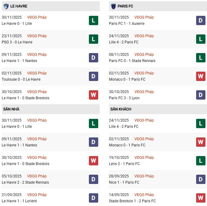 Le Havre vừa trải qua giai đoạn đầy trồi sụt khi họ khởi đầu tháng 12 bằng chuỗi 2 thất bại liên tiếp, nối dài phong độ nghèo nàn trước khung thành đối thủ. Đoàn quân của HLV Didier Digard đã không ghi bàn ở 3 trong 4 trận gần nhất, đồng thời có 6 vòng liên tiếp chỉ ghi tối đa 1 bàn. Dù chơi khá kiên cường trên sân nhà, Le Havre lại chưa biết đến chiến thắng ở Stade Océane kể từ cuối tháng 10, khiến sự tự tin của họ bị đặt dấu hỏi lớn trước màn tiếp đón Paris FC.