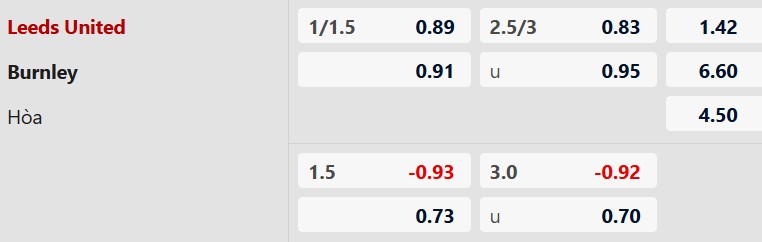 Soi kèo châu Á Leeds United vs Burnley:
