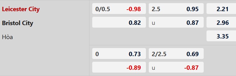 Thông tin tỷ lệ kèo Leicester vs Bristol City: