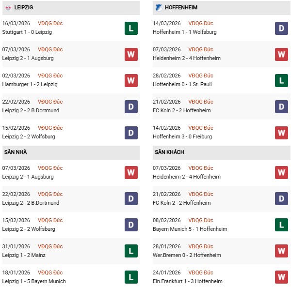 Thống kê phong độ Leipzig vs Hoffenheim: