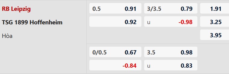 Thông tin tỷ lệ kèo bóng đá Leipzig vs Hoffenheim: