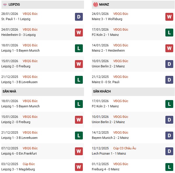 Tuy nhiên, điểm yếu lớn nhất của Mainz nằm ở khả năng thi đấu xa nhà, khi họ chỉ thắng 1, hòa 3 và thua tới 6 trong 10 chuyến làm khách gần đây. Trước một Leipzig đang khát điểm và có phong độ sân nhà rất cao, Mainz nhiều khả năng sẽ phải lựa chọn lối chơi phòng ngự phản công, chờ đợi cơ hội từ những tình huống cố định.