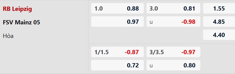 Thông tin tỷ lệ cược Leipzig vs Mainz:
