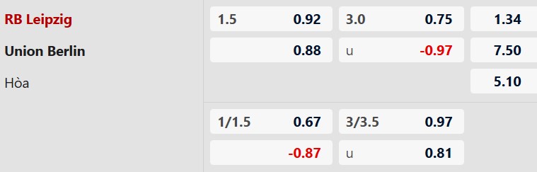 Thông tin tỷ lệ bóng đá Leipzig vs Union Berlin: