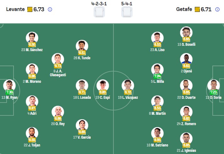 Đội hình dự kiến Levante vs Getafe: