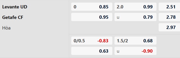 Thông tin tỷ lệ bóng đá Levante vs Getafe:
