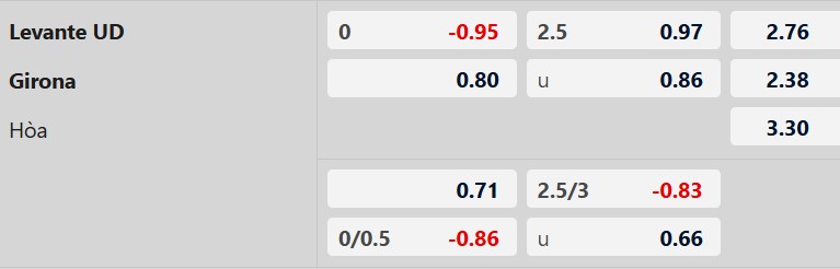 Thông tin tỷ lệ bóng đá Levante vs Girona: