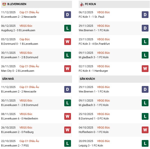 - Trên sân nhà, Leverkusen thắng 5, thua 3 trước FC Koln.