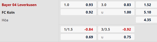 Thông tin tỷ lệ kèo bóng đá Leverkusen vs FC Koln: