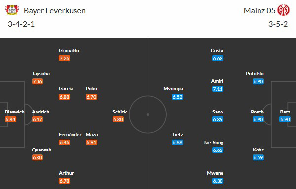 Đội hình dự kiến Leverkusen vs Mainz: