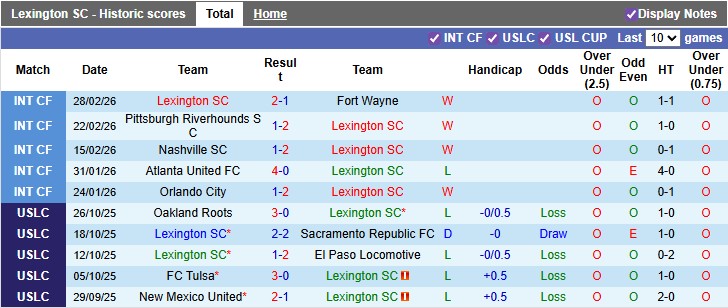 Thống kê phong độ Lexington vs Louisville:
