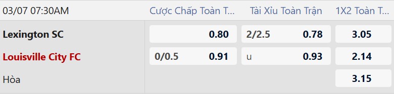 Thông tin tỷ lệ kèo Lexington vs Louisville: